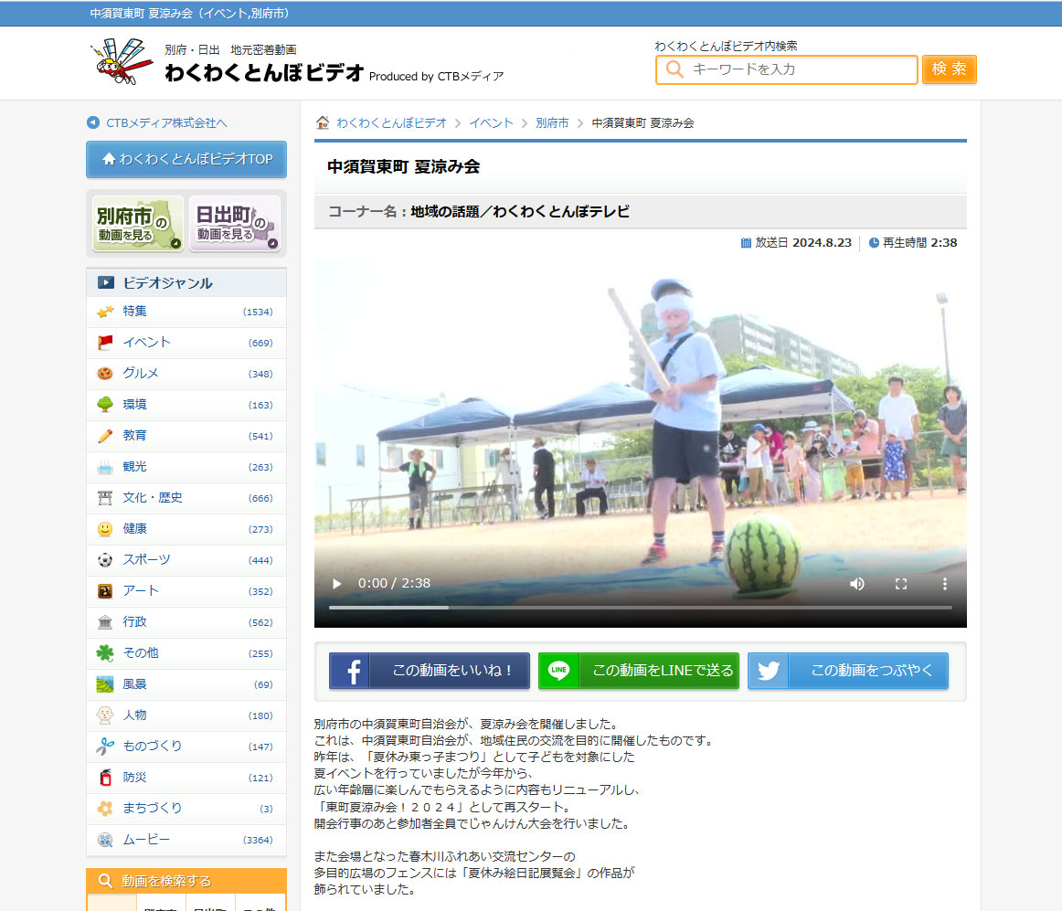2022年12月19日放送のCTBメディア「わくわくとんぼテレビ」の『特集 別府市中須賀東町町報「つくし」』の中で